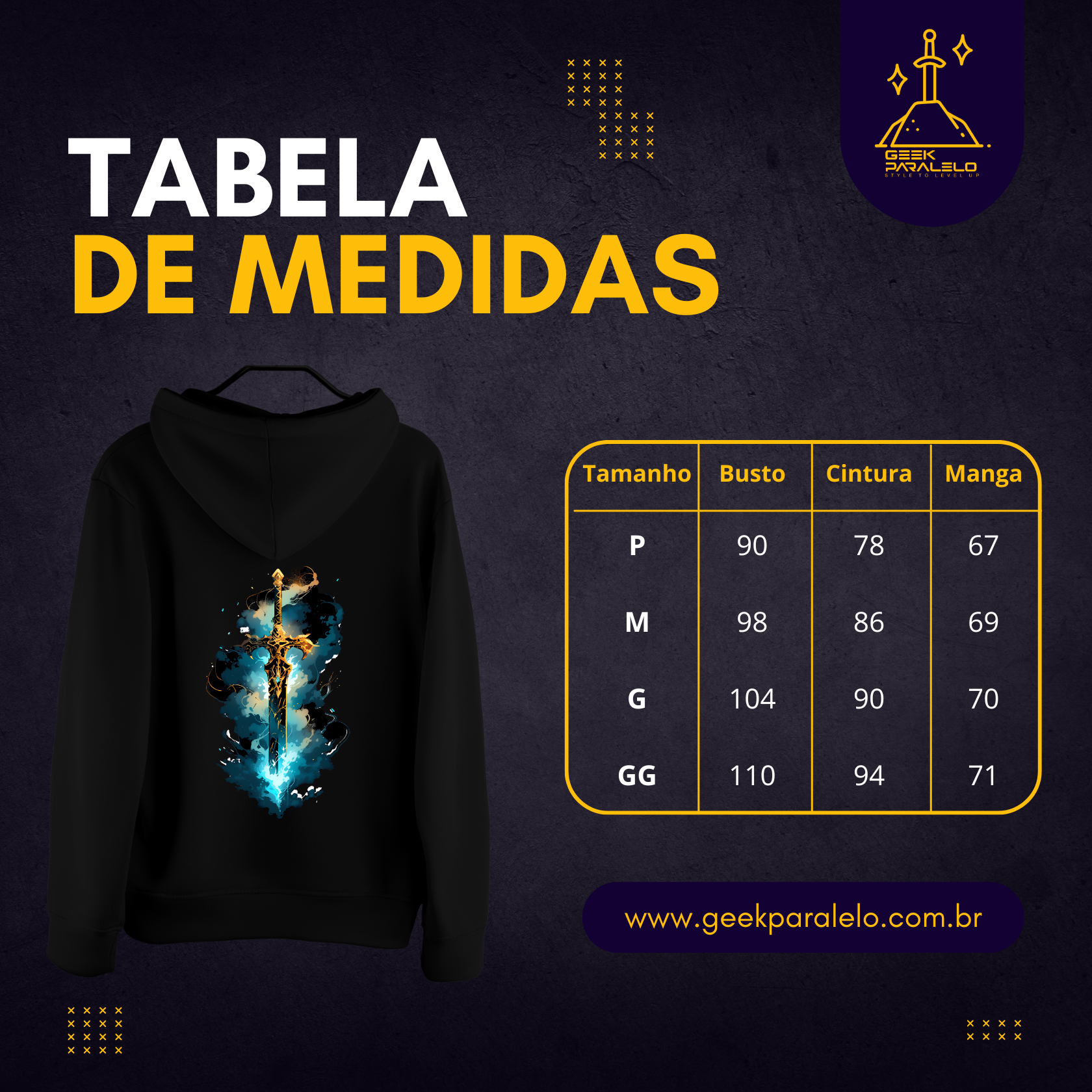 Este moletom é um lembrete de que nem sempre é preciso uma coroa para ser digno. Vista a lenda, leve consigo o espírito de Camelot e mostre ao mundo que a magia ainda vive.
