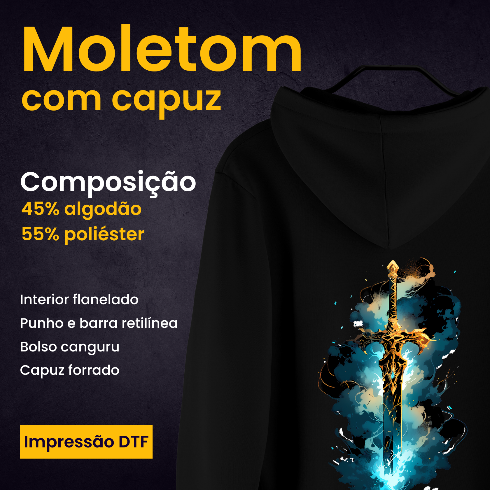 Material: Moletom 2 cabos, gramatura 310.