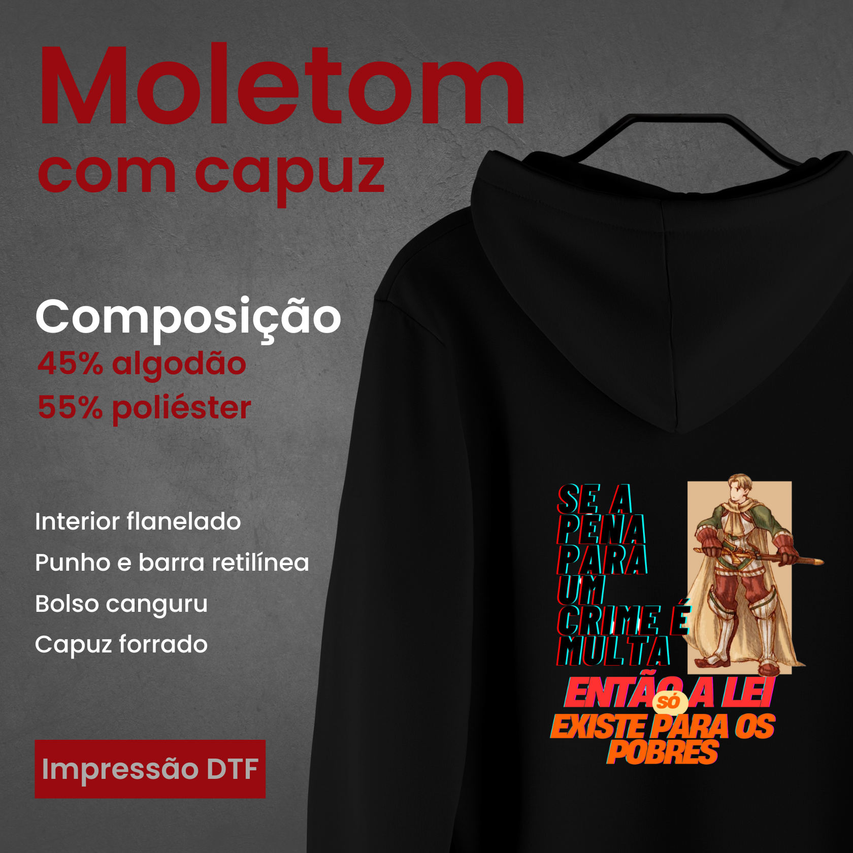 Material: Moletom 2 cabos, gramatura 310.