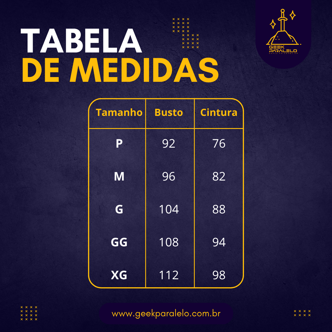 Atenção: As medidas podem variar um pouco, até 3cm pra mais ou pra menos, mas nada que mude o quanto ela vai ficar legal em você!