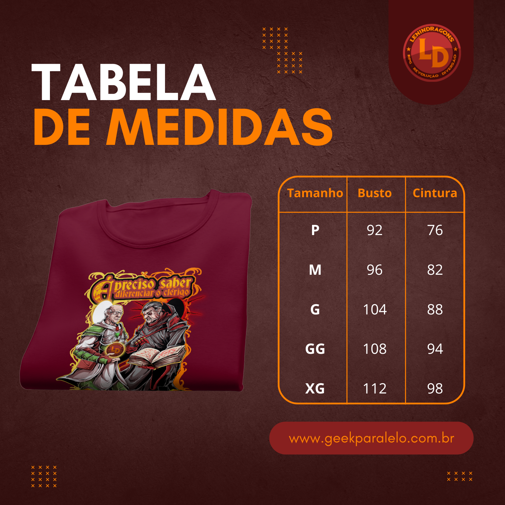 Atenção: As medidas podem variar um pouco, até 3cm pra mais ou pra menos, mas nada que mude o quanto ela vai ficar legal em você!
