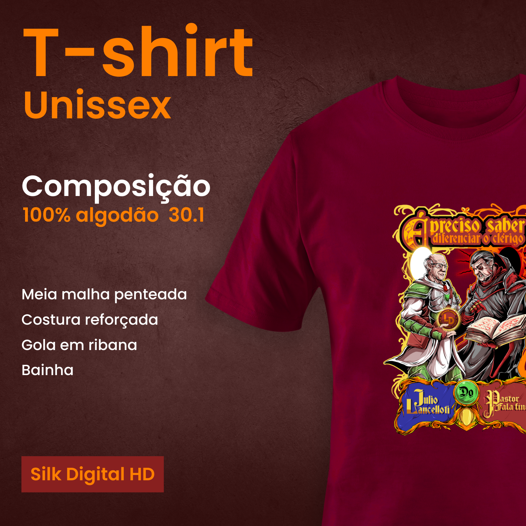 Cores do produto: Como cada tela de computador ou celular tem seu próprio jeito de mostrar cores, então a cor da sua camiseta e da estampa pode ser um pouco diferente do que você viu online.