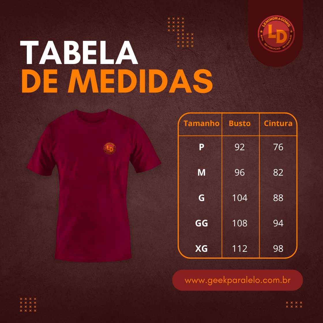 Cores do produto: Como cada tela de computador ou celular tem seu próprio jeito de mostrar cores, então a cor da sua camiseta e da estampa pode ser um pouco diferente do que você viu online.