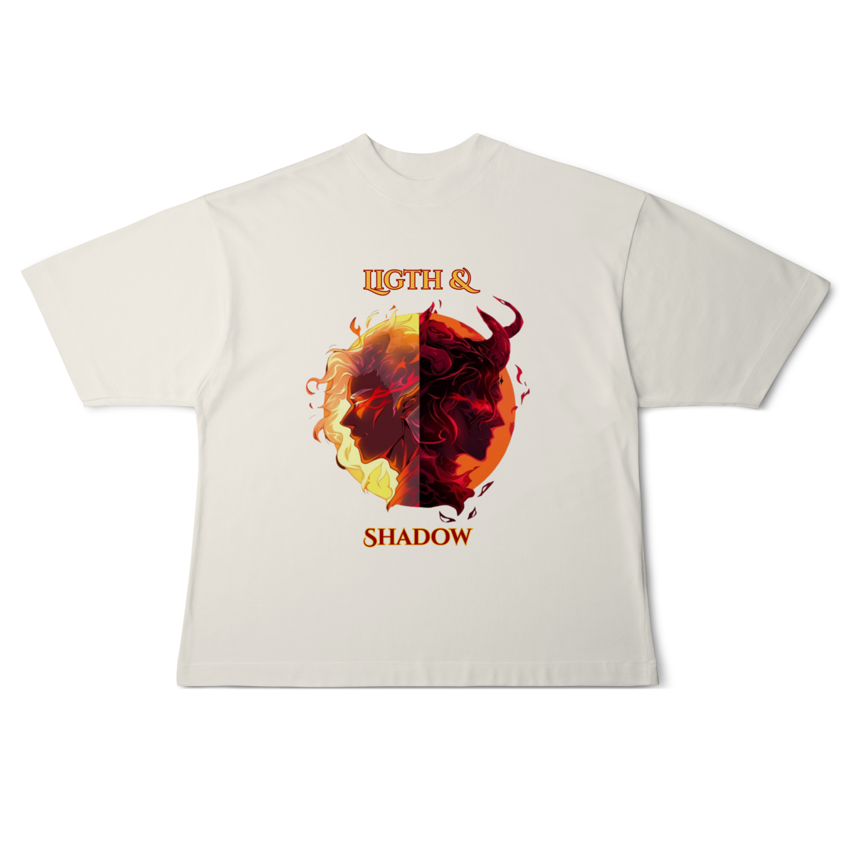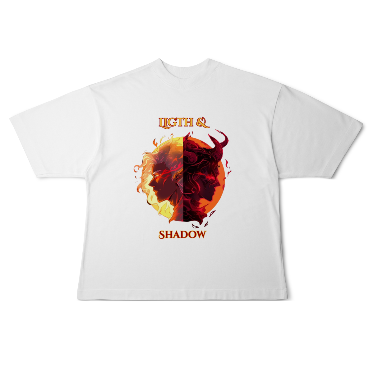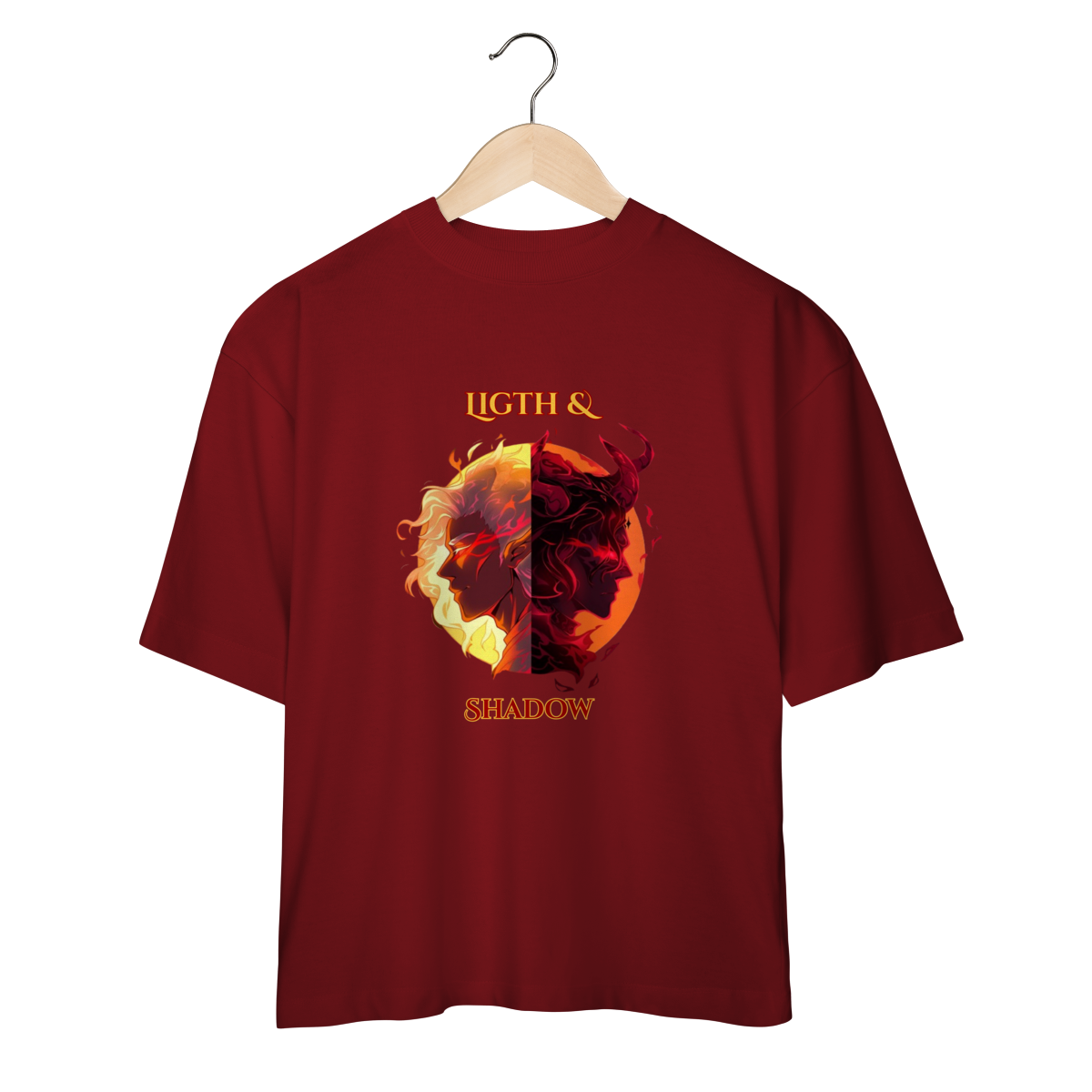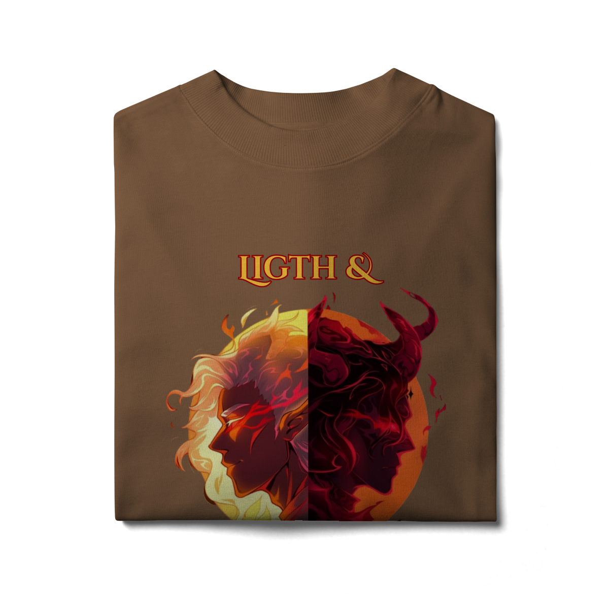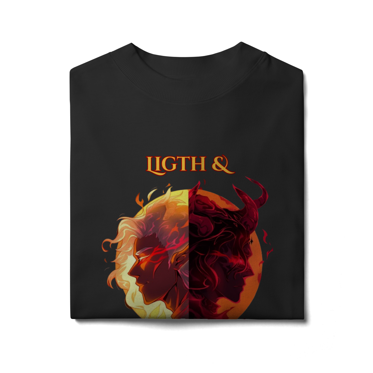 Escolha seu lado nesta batalha épica entre a Luz e as Trevas. Inspirada nos mundos fantásticos de RPG e MMORPG, esta arte traz a essência da fantasia dark para o seu estilo.
