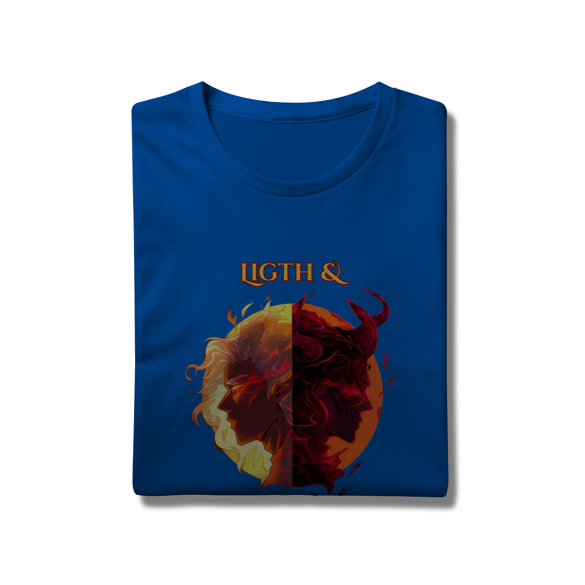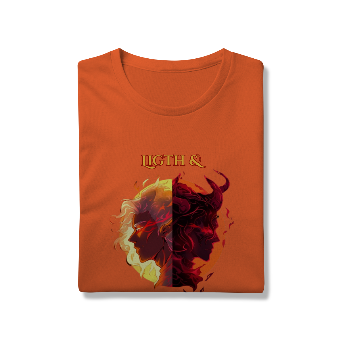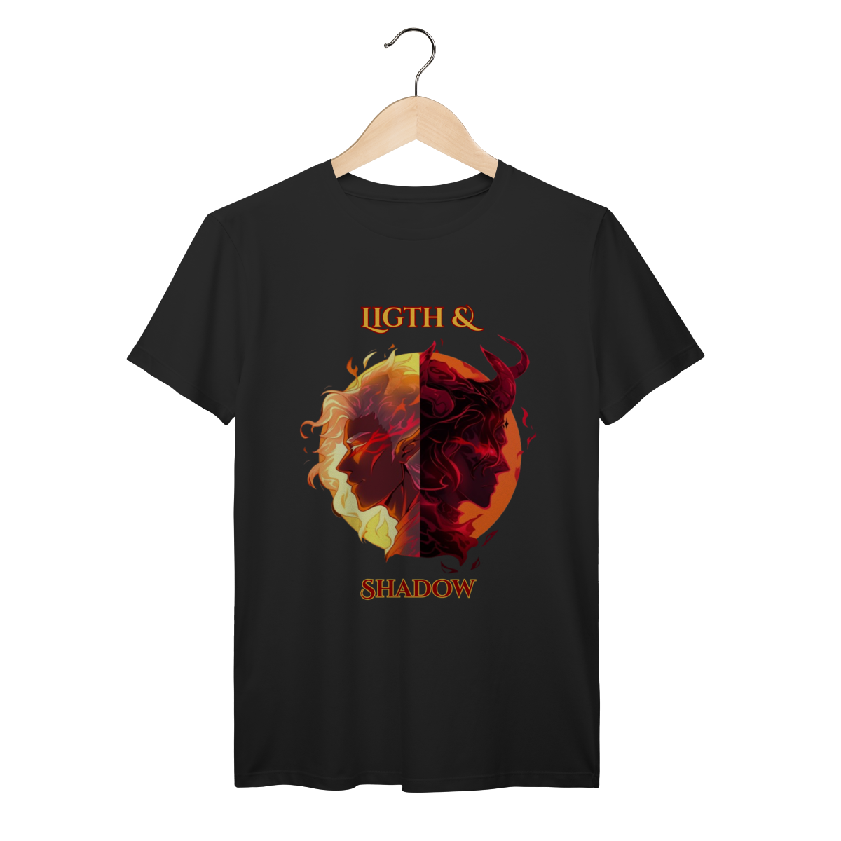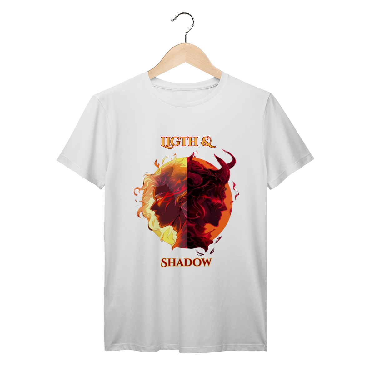 Escolha seu lado nesta batalha épica entre a Luz e as Trevas. Inspirada nos mundos fantásticos de RPG e MMORPG, esta arte traz a essência da fantasia dark para o seu estilo.