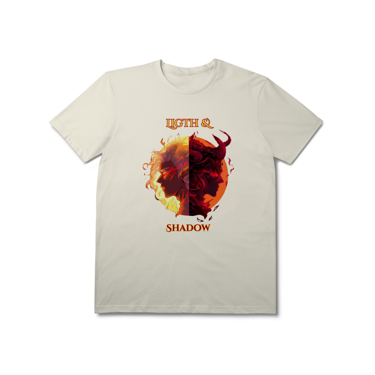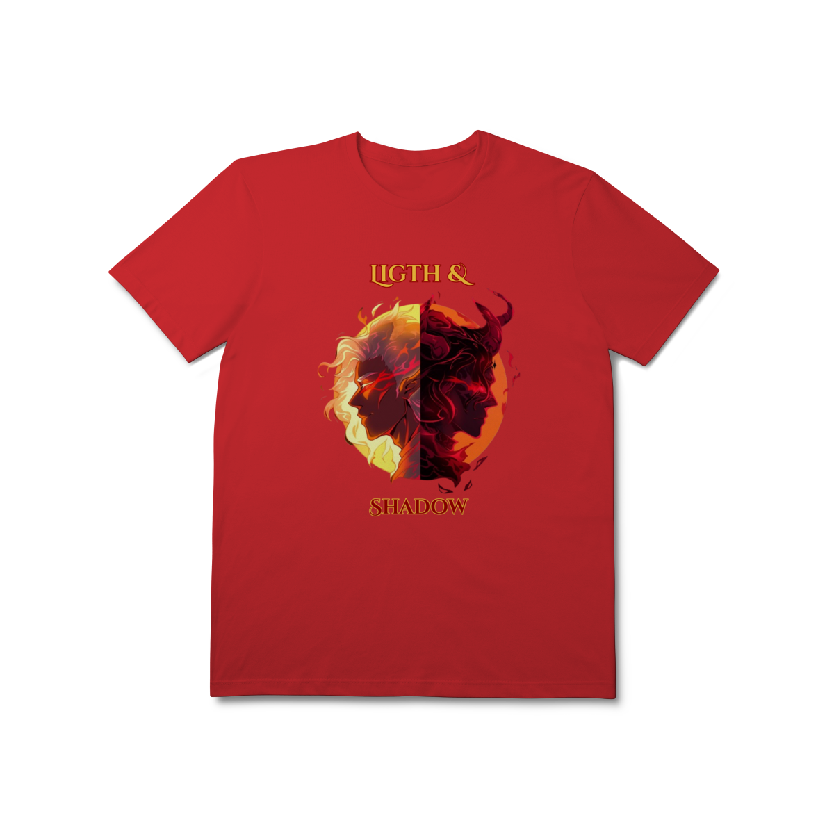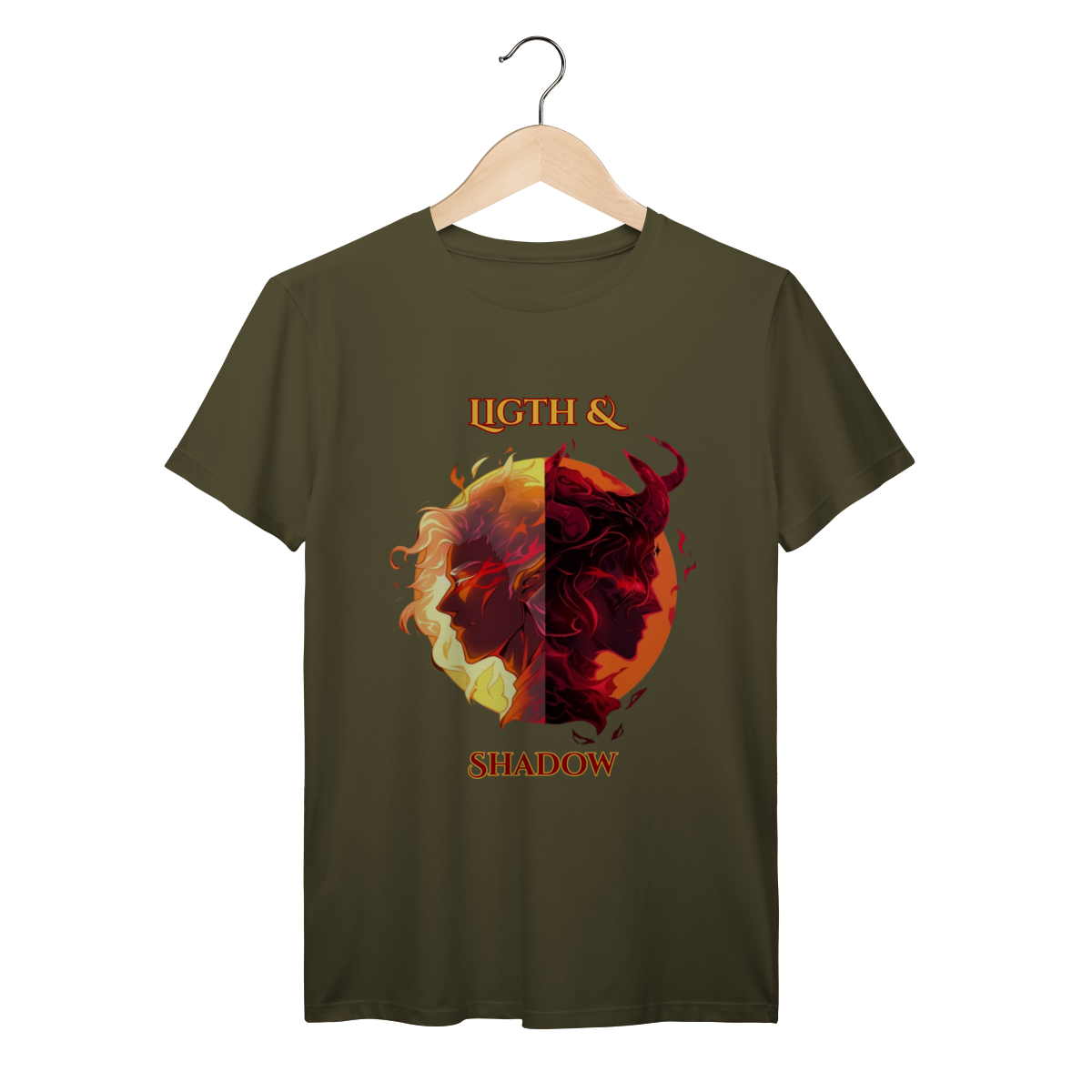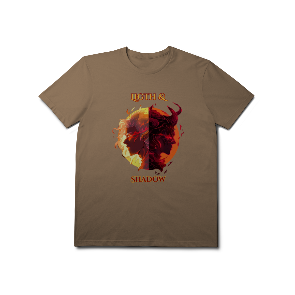 Escolha seu lado nesta batalha épica entre a Luz e as Trevas. Inspirada nos mundos fantásticos de RPG e MMORPG, esta arte traz a essência da fantasia dark para o seu estilo.