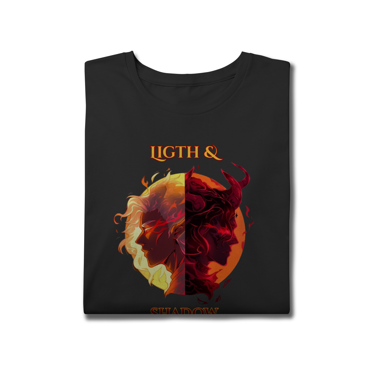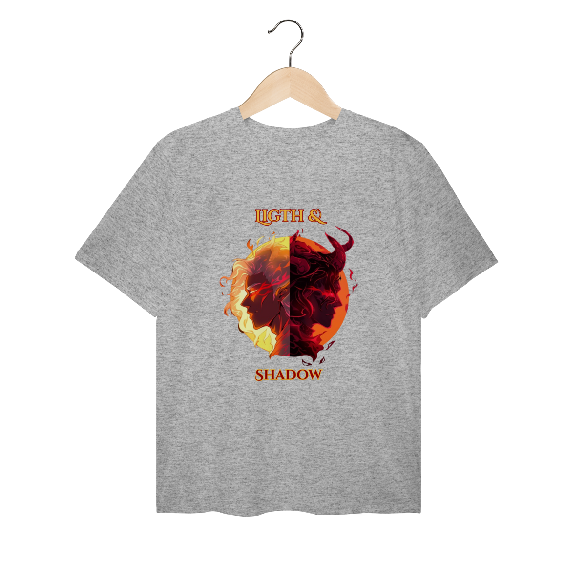 Escolha seu lado nesta batalha épica entre a Luz e as Trevas. Inspirada nos mundos fantásticos de RPG e MMORPG, esta arte traz a essência da fantasia dark para o seu estilo.
