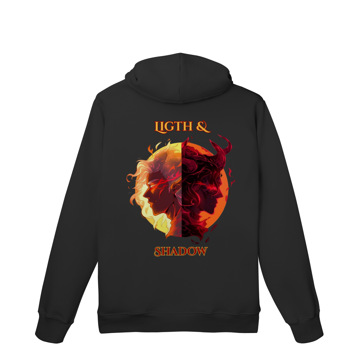 Escolha seu lado nesta batalha épica entre a Luz e as Trevas. Inspirada nos mundos fantásticos de RPG e MMORPG, esta arte traz a essência da fantasia dark para o seu estilo.