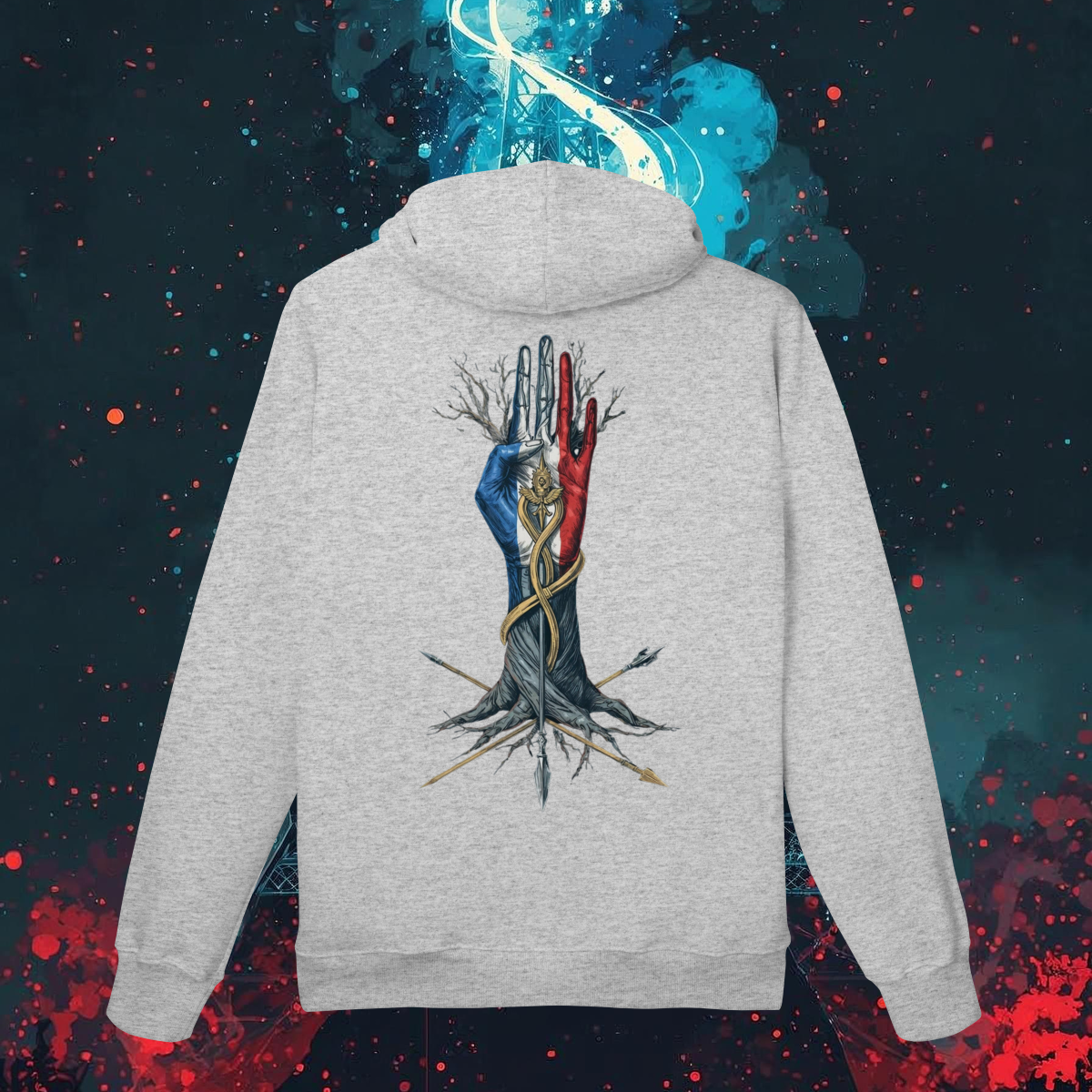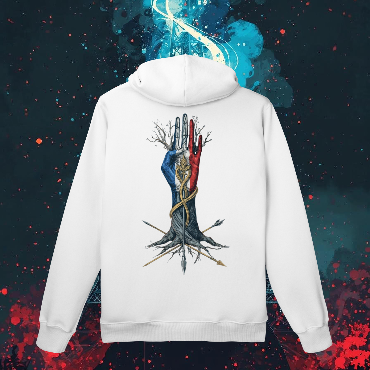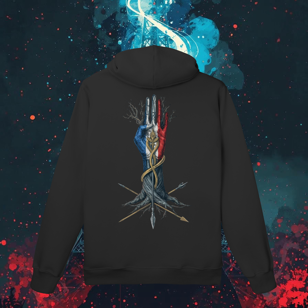 Inspirada nos símbolos mais marcantes da Revolução Francesa, esta arte transforma a Árvore da Liberdade em um totem místico, onde a Mão da Justiça, a bandeira tricolor e a Cocarde brilham como emblemas de força e mudança. Minimalista, dark e cheia de significado, é a peça ideal para quem carrega liberdade, coragem e história no peito.