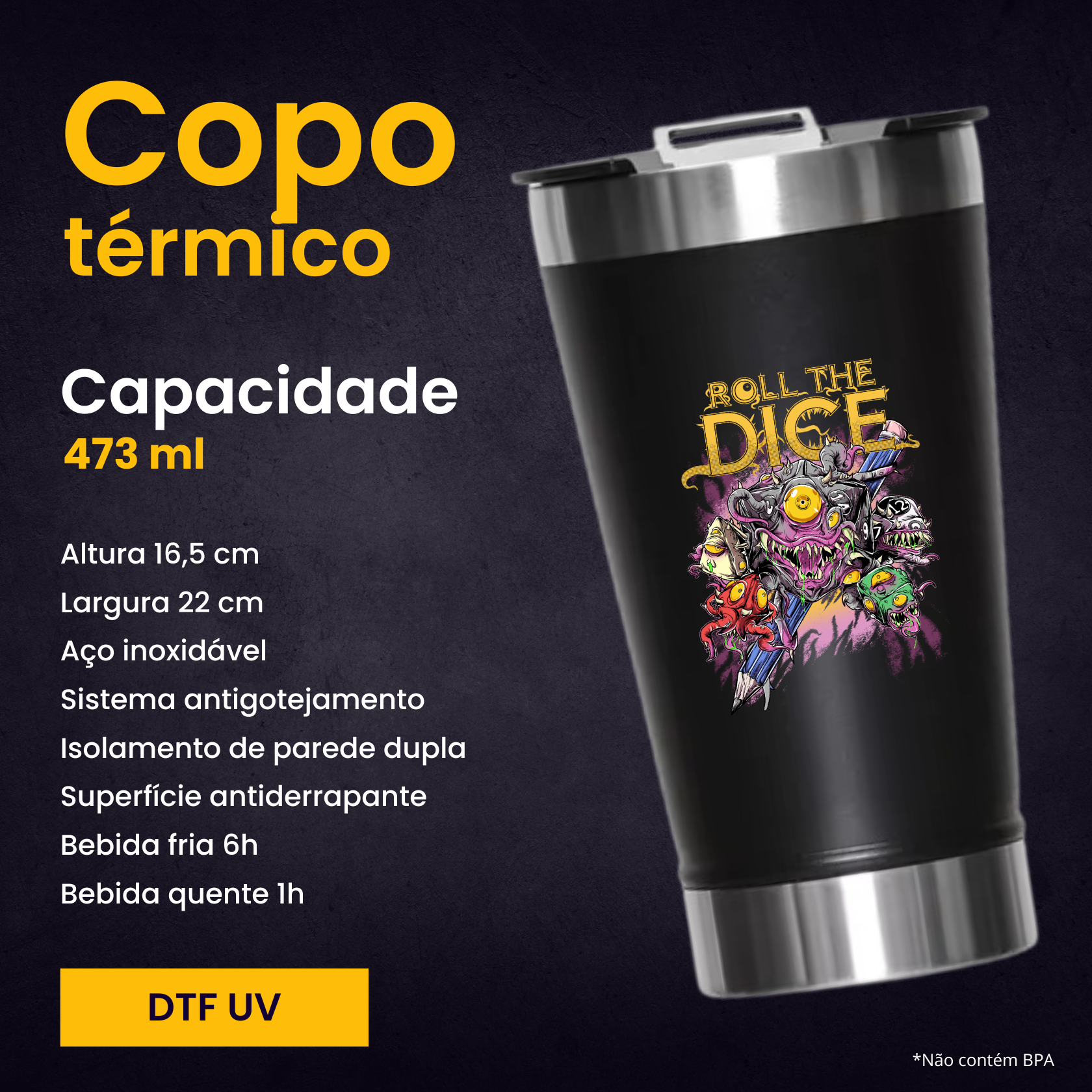 Técnica de impressão: DTF UV (Direct to Film).