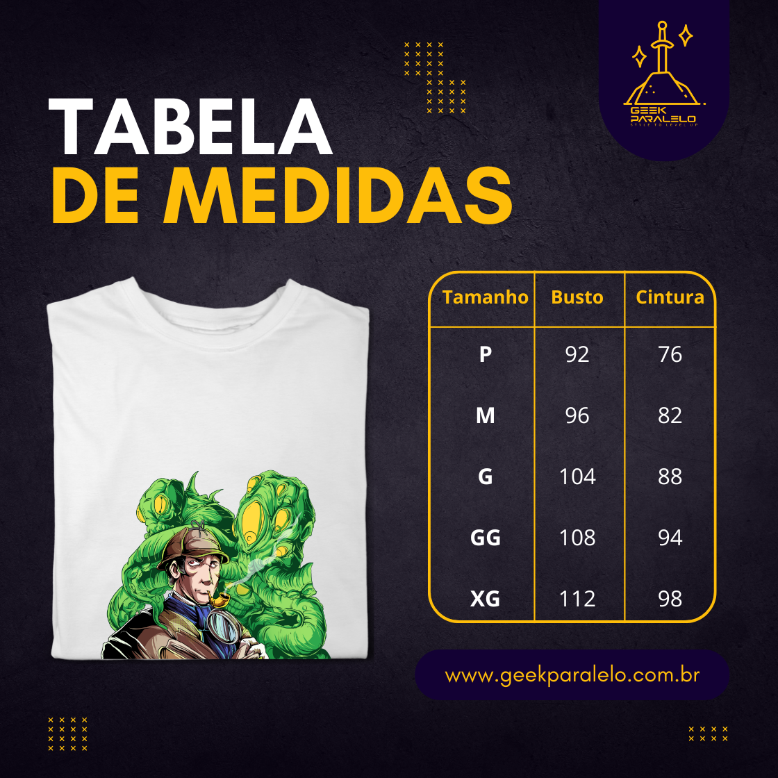Cores do produto: Como cada tela de computador ou celular tem seu próprio jeito de mostrar cores, então a cor da sua camiseta e da estampa pode ser um pouco diferente do que você viu online.