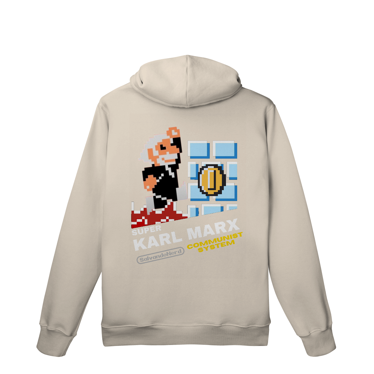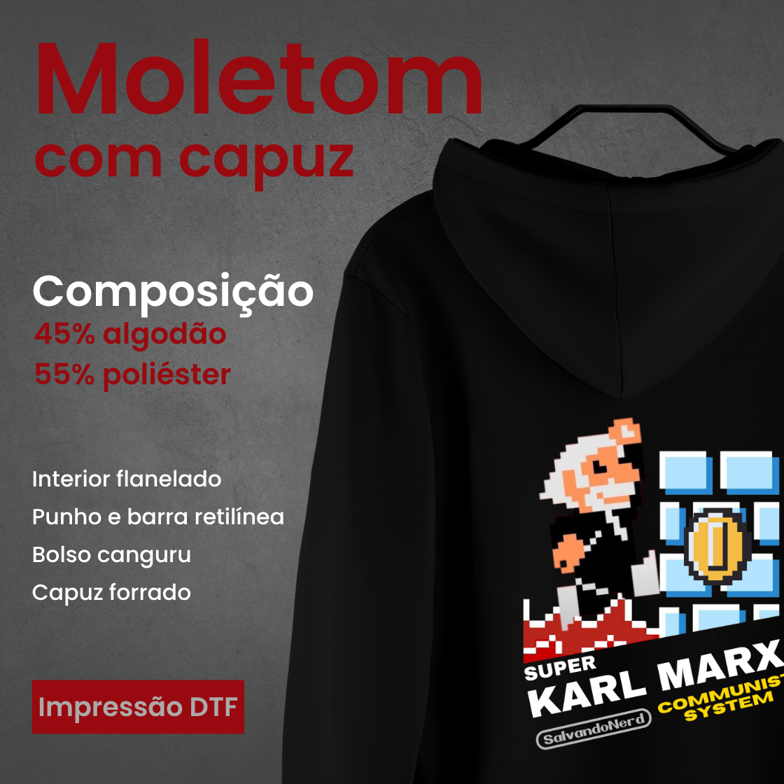 Nesta estampa icônica, o pai do comunismo entra no universo 8-bits para destruir o sistema capitalista, moeda por moeda! Uma fusão irreverente entre o clássico Super Mario Bros e a crítica social marxista, com estilo retrô, pixel art e muito sarcasmo anticapitalista. Perfeita para quem quer um look militante e gamer ao mesmo tempo.