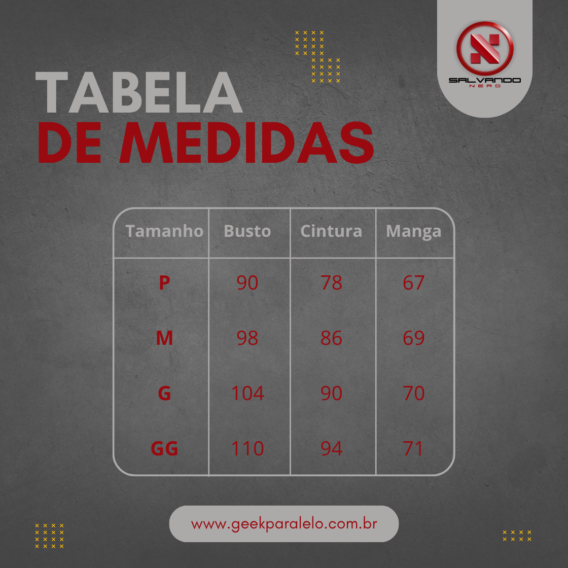 Atenção: As medidas podem variar um pouco, até 3cm pra mais ou pra menos, mas nada que mude o quanto ela vai ficar legal em você!