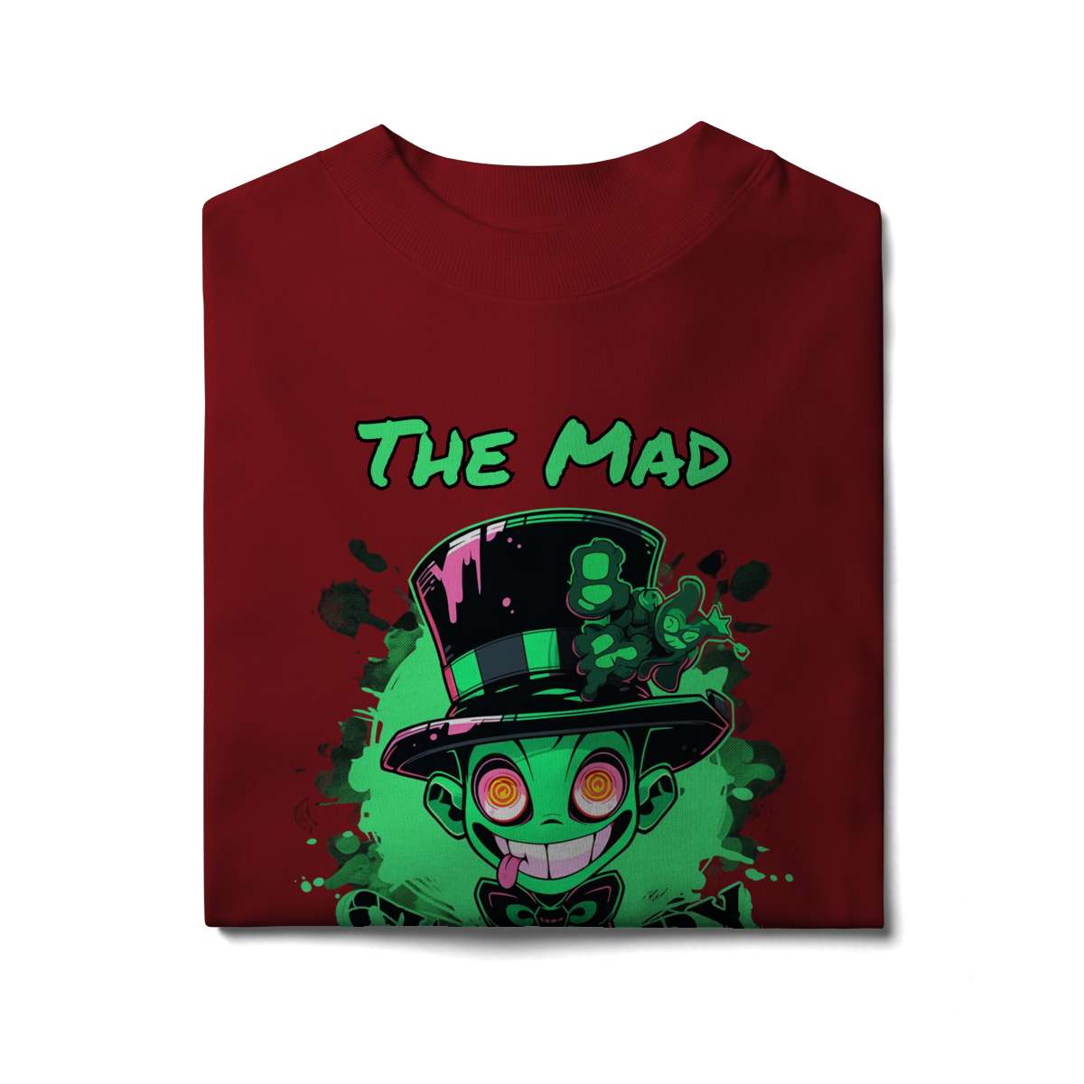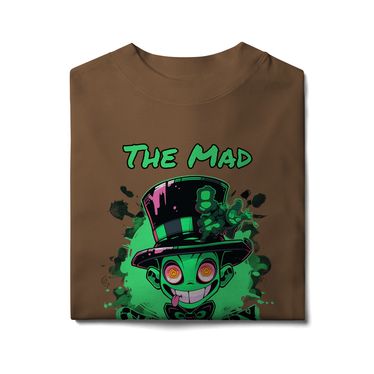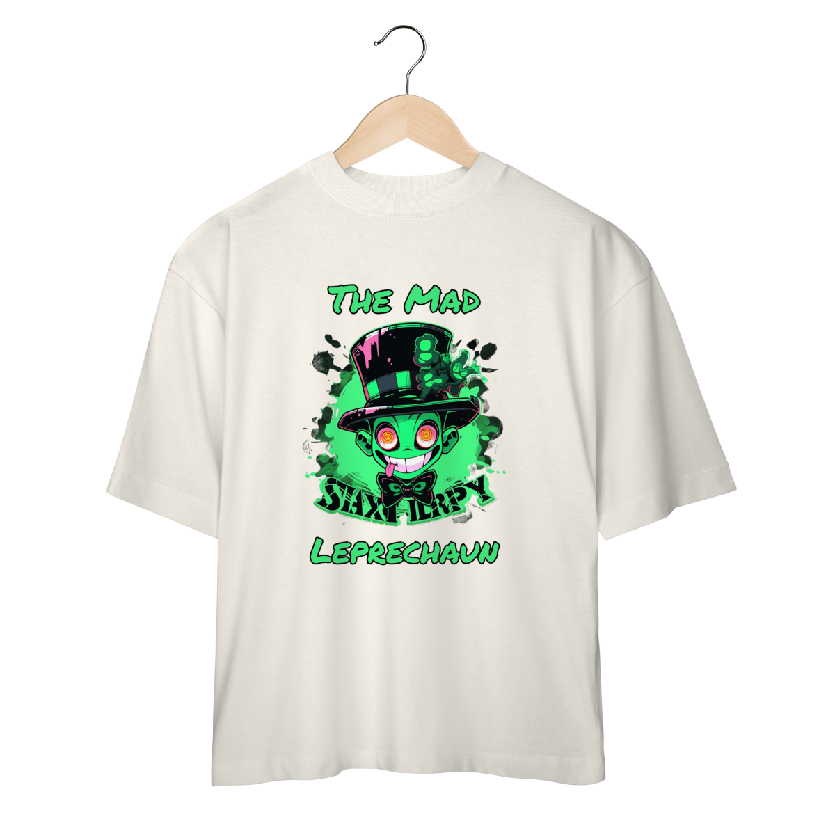 A estampa do Irlandês Maluco mistura o charme caótico do Chapeleiro Maluco com o espírito vibrante da cultura irlandesa, do criativo e o excêntrico.